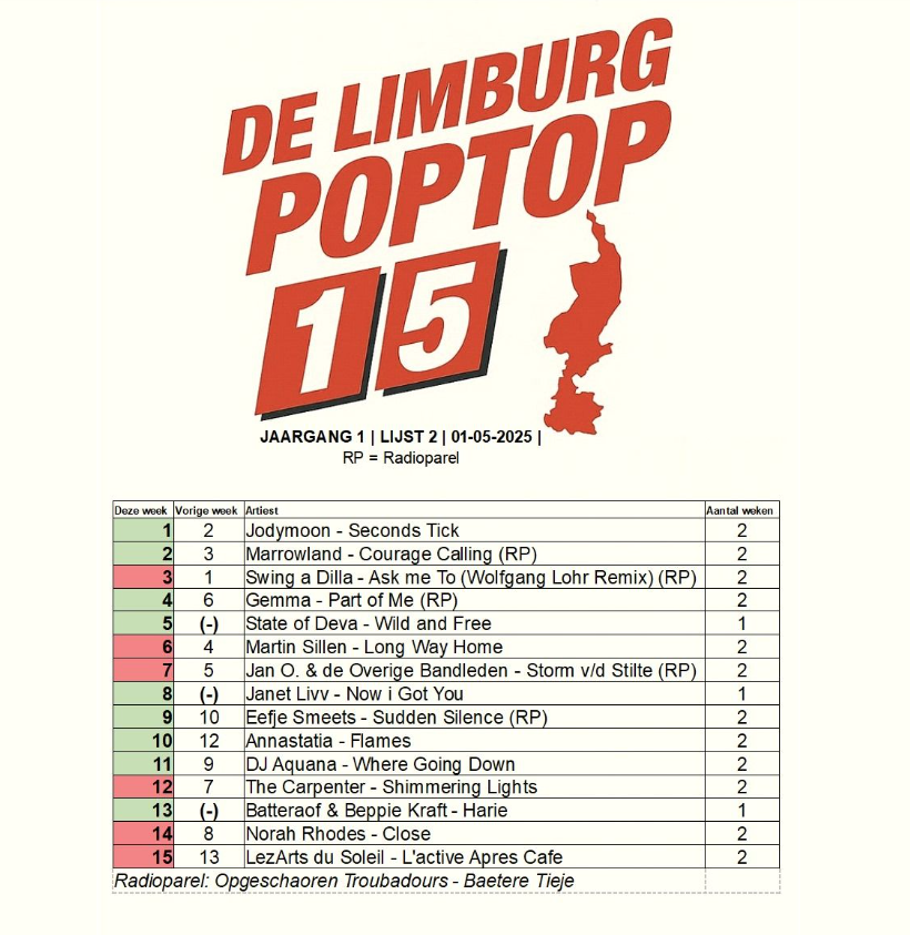 We staan nummer 1 in de Limburg POPTOP 15 met Seconds Tick!